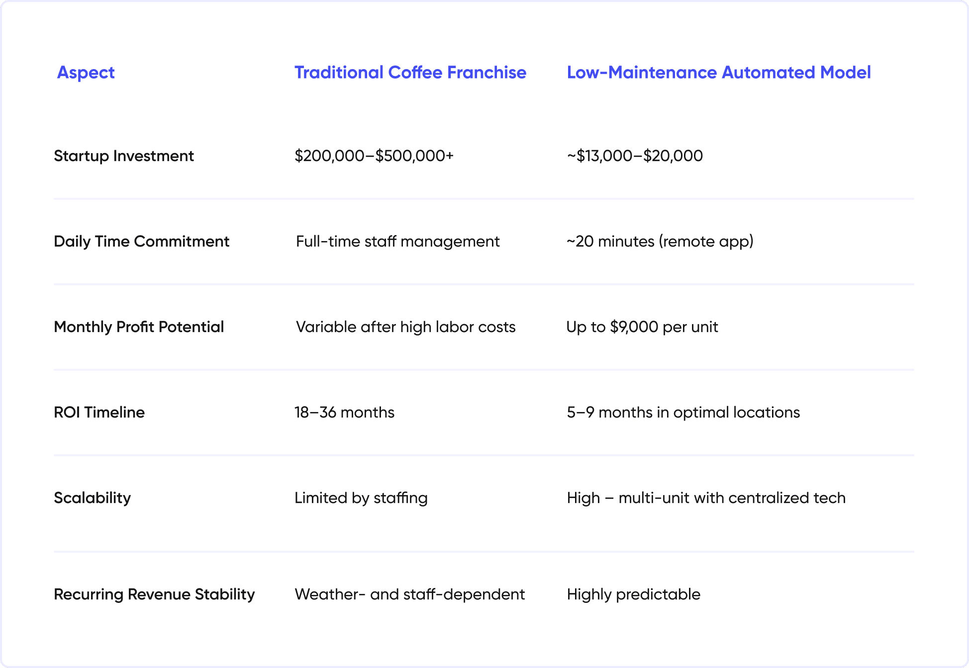 To understand how coffee automation creates scalable recurring revenue, read our analysis of automated food & beverage franchise opportunities.